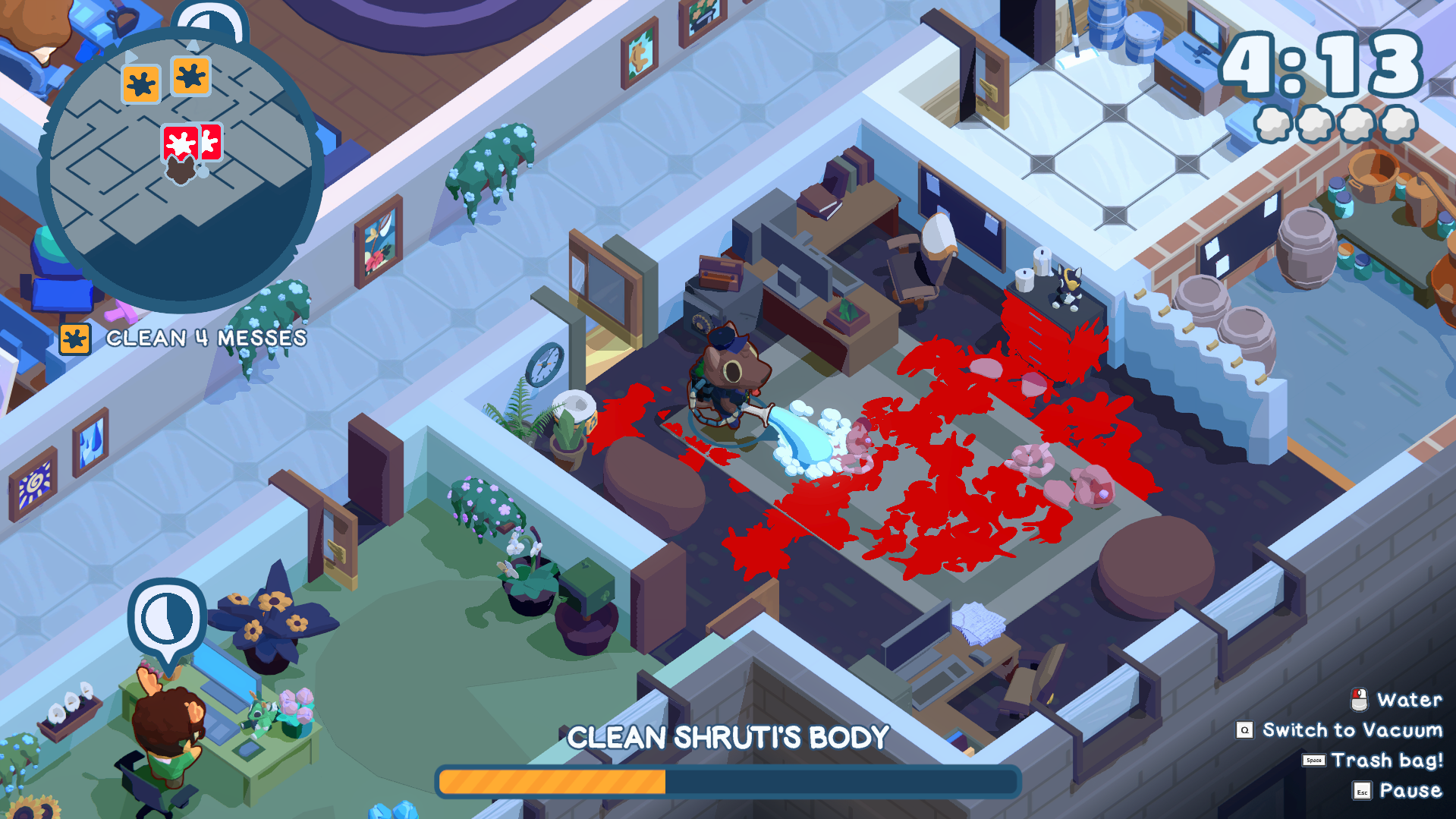 3D Isometric Stealth-Cleaning Game