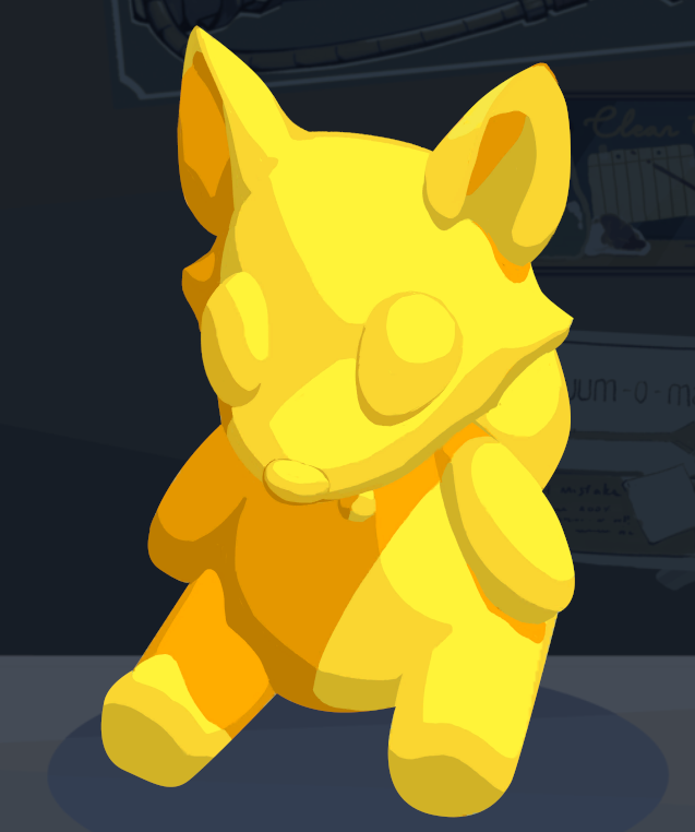 “This is one of the discontinued plushies that never made it to market. The idea was to make a premium plushie out of pure gold. Stupid idea. When tested, the plushie was extremely uncomfortable to snuggle with.